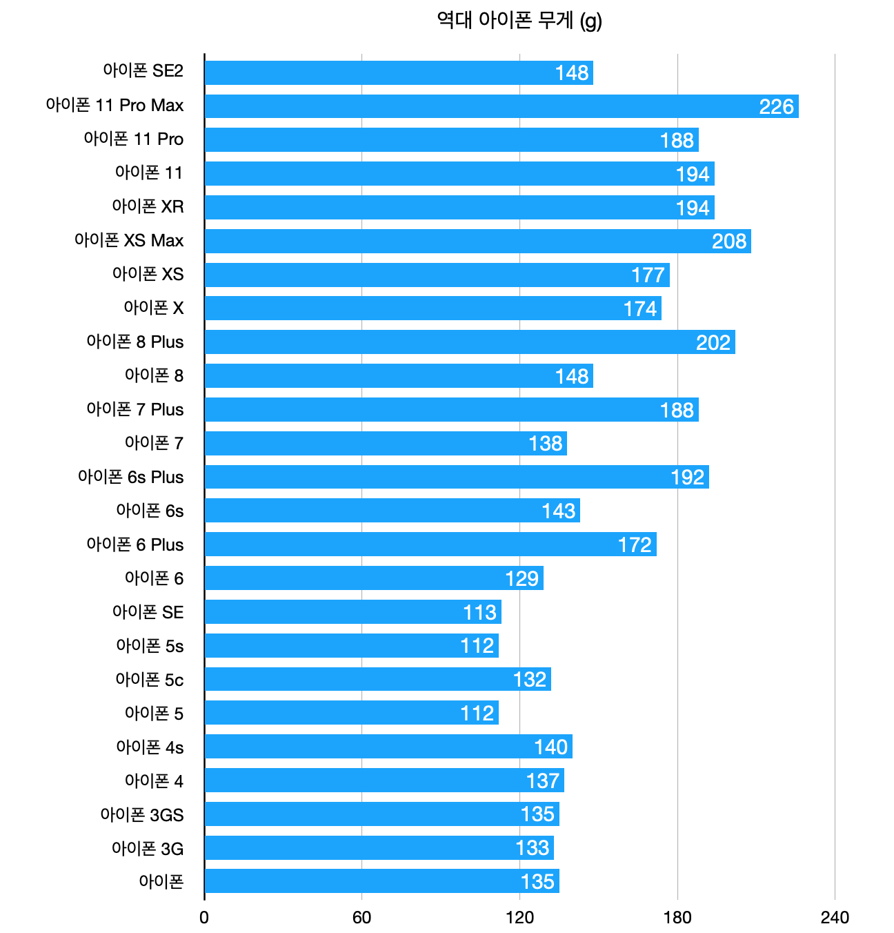- 아이폰 무게 비교표