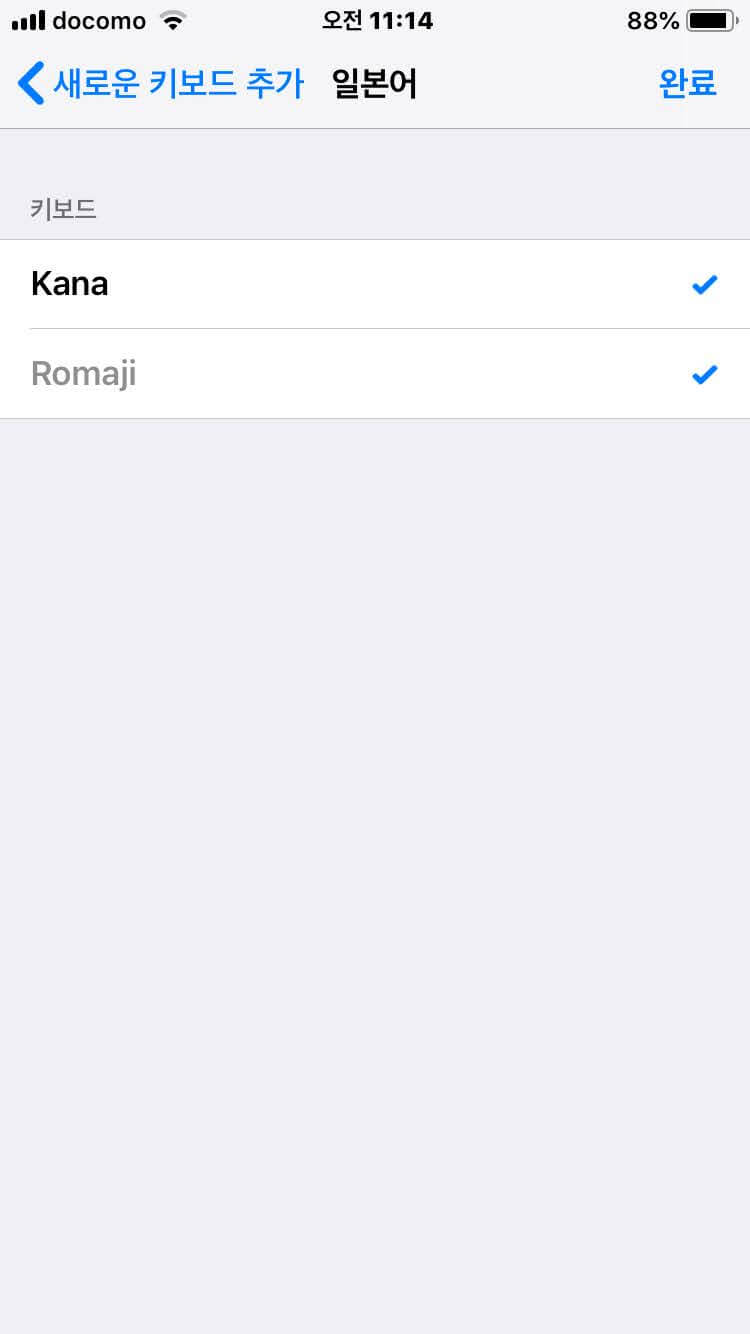 아이폰에는 에모지 이모티콘 외에도 카오모지 이모티콘이 있는데요. 이를 사용하기 위해서는 일본어의 Kana키보드를 설치해 줘야 합니다. Kana키보드의 추가 방법은 아래와 같습니다.