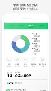 - 은행 및 카드회사 어플의 푸시 분석으로 내역을 입력할 수 있습니다.