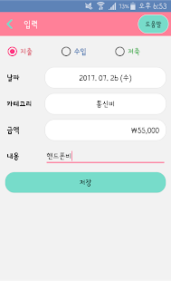 - 분류(카테고리) 별로 예산을 추가해 매달 지출, 수입, 저축을 관리할 수 있습니다.