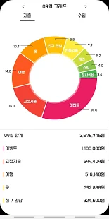 - 자산, 카테고리, 금액별로 나눠서 통계를 확인할 수 있습니다.