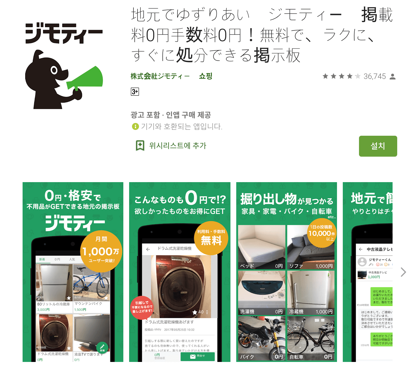 자기가 사는지역이라는 지모티의 어원에서 알 수 있듯이, 지역별로 세세히 나눠져 있기 때문에, "가지러 와주세요"라고 하는 출품자도 많은 것이 특징이랍니다.
