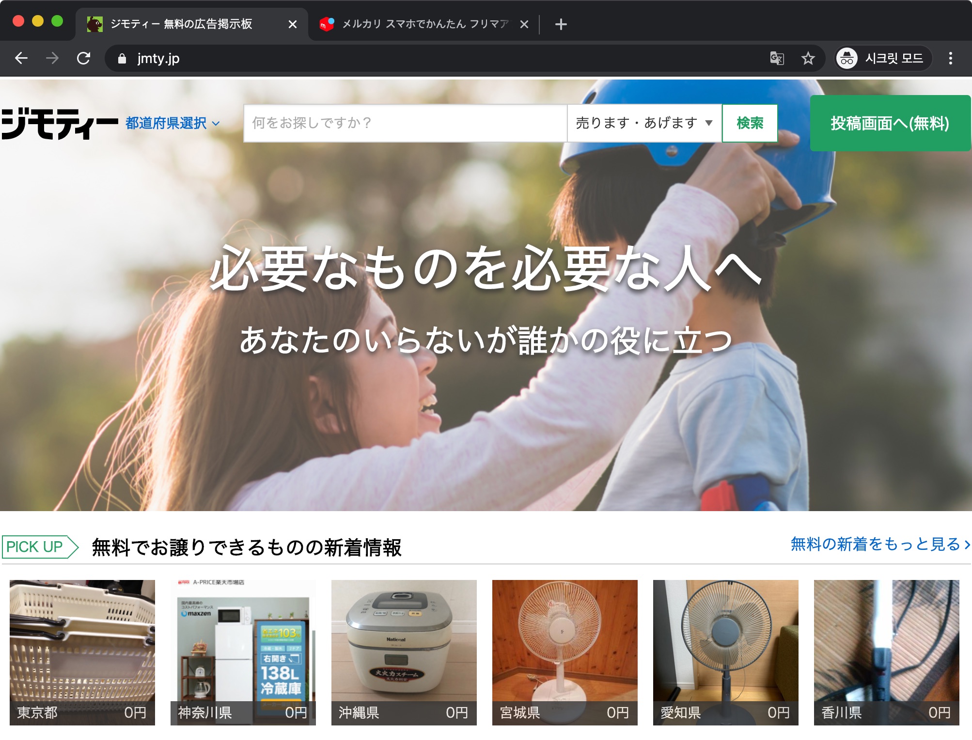 자기가 사는지역이라는 지모티의 어원에서 알 수 있듯이, 지역별로 세세히 나눠져 있기 때문에, "가지러 와주세요"라고 하는 출품자도 많은 것이 특징이랍니다.