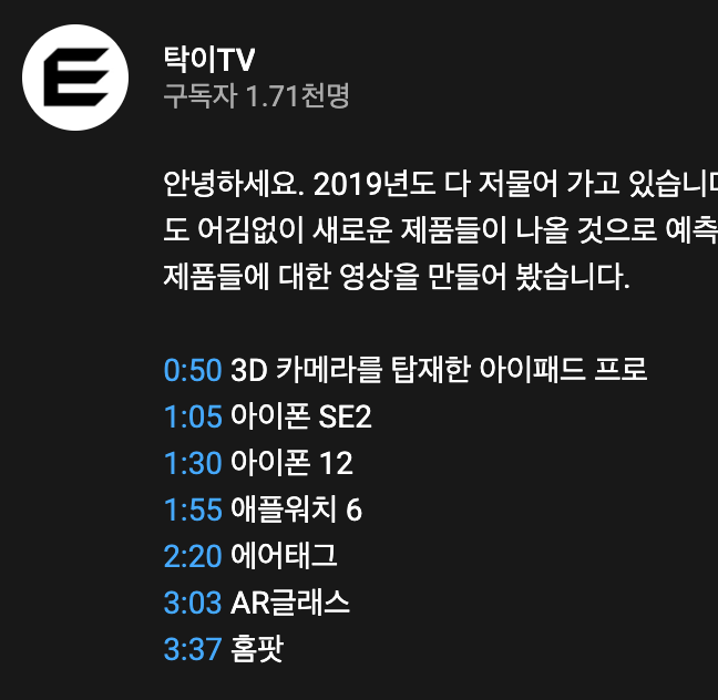 타임 스템프의 챕터 기능이 있는 실제 영상은 아래 링크의 영상을 확인해 보세요.