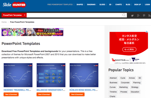 비지니스를 중심으로 고품질의 프레젠테이션 파일이 400개 이상 있는 해외 사이트입니다. 회원 등록 등은 필요하지 않지만 다운로드시는 Twitter, Facebook, Google + 중 하나에서 페이지를 공유해야합니다.