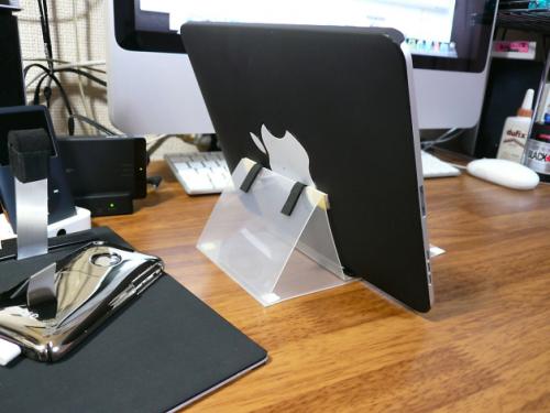 태블릿을 걸치는 곳을 계단 모양으로 만들어 각각의