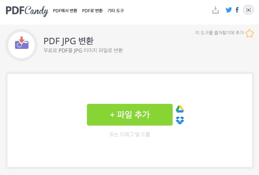 pdfcandy 는 PDF 파일을 jpeg / jpg로 변환하는 완전 무료 사이트입니다. jpeg / jpg 이미지 형식뿐만 아니라 다양한 파일 형식으로 변환을 할 수 있구요. 변환 된 jpeg 파일을 Google drive와 dropbox에 업로드 할 수 있습니다.