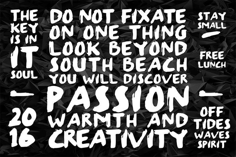 모두 대문자인 산세 리프 서체로 불규칙 라인이 핸드 메이드 느낌을 연출합니다.