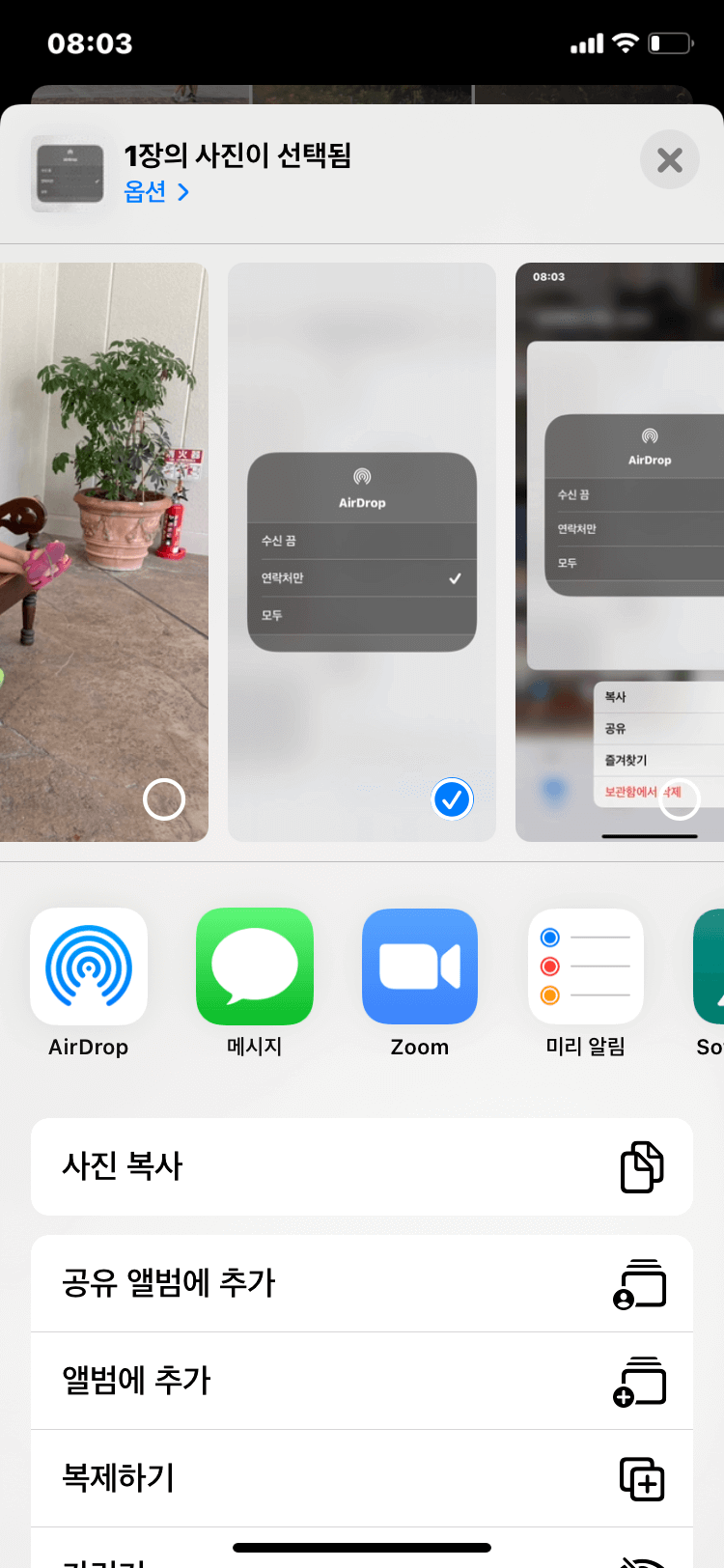 아이폰 에어드랍 사용법 - 파일을 보내기