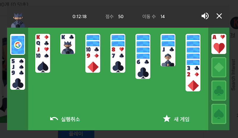"솔리테어" 윈도우즈의 클래식 카드게임 표시