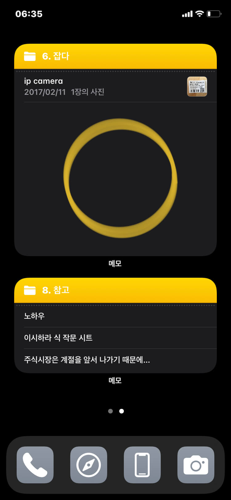 뛰어난 가시성으로 인해 많은 위젯을 사용하고 싶지만 홈화면의 자리를 많이 차지하는것이 흠이라고 할 수 있습니다. 이럴때 스택을 만들어 사용하면 편리한데요. 위젯의 스택을 만드는 방법은 아래와 같습니다. 동일한 복수의 위젯을 스택에 넣을 수도 있는데요. 예를 들어 메모위젯은 폴더별로 다른 메모를 복수의 위젯으로 표시할 수 있습니다.