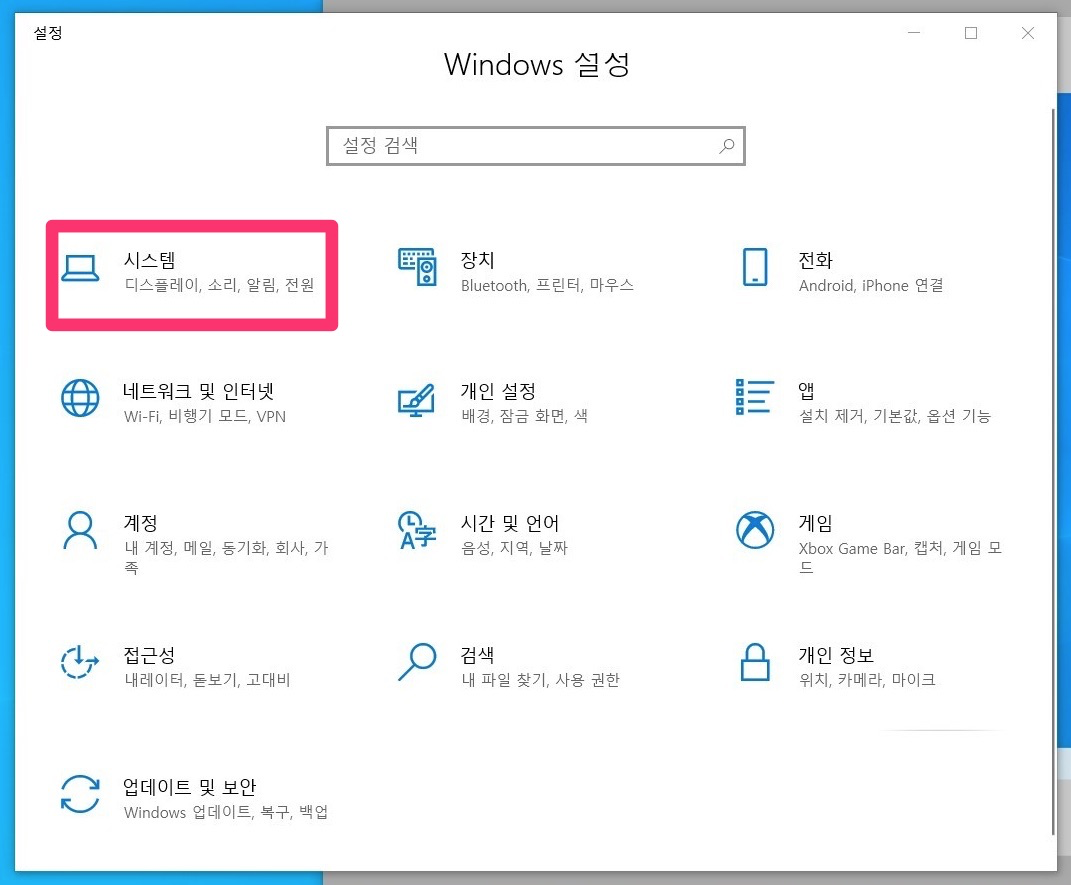 "시스템" 아이콘을 선택하고 왼쪽 메뉴에서 "정보" 를 선택합니다.