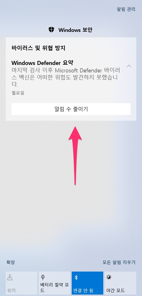액션 센터에 광고를 통지하지 못하게하는 방법