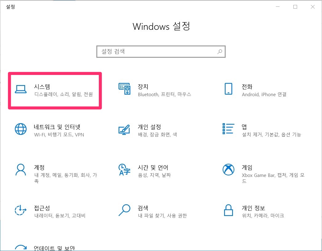 시작 → 기어 아이콘 (설정)에서 Windows 설정을 시작합니다. "시스템"을 선택하십시오.