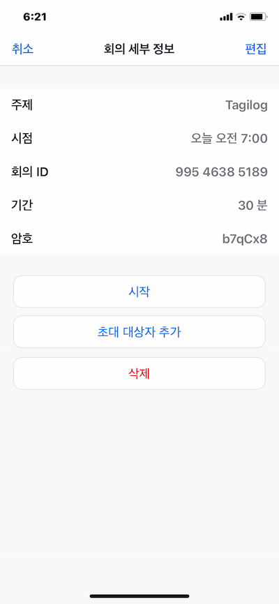 - 주최자가 발행 한 미팅 URL 또는 모임 ID