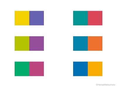 6 개의 색상 예제 중 노란색과 청자는 밝기 차이가 가장 큰 조합으로 선명도도 높아지고 있습니다. 한편, 파랑 녹색과 적색은 밝기가 근사하고 눈부심 (쨍쨍 눈부시게 느끼는 보이지 어려움)이 발생하고 있습니다. 눈부심을 완화하려면 채도를 낮추고, 명도 차이에 변화를 줄 것이 좋습니다.