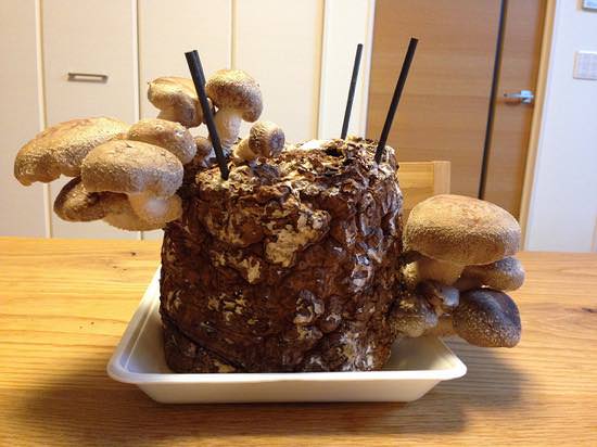 톱밥에 영양원을 섞어 만든 배지에 "표고 버섯 균" 을 심어 주어, 실내 배양 3 개월 정도에 수확 할 수있는 상태로 재배 방법입니다.