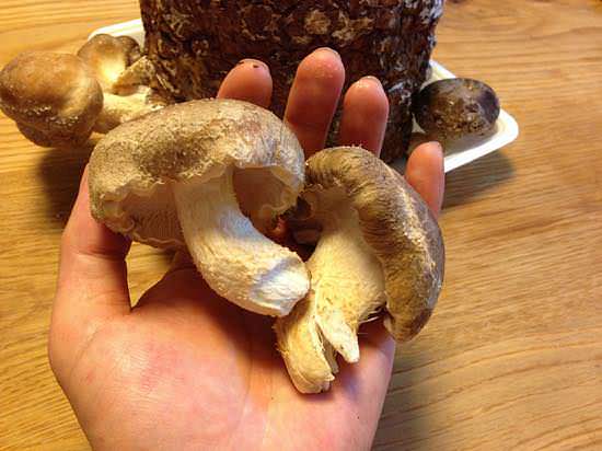 표고 버섯은 우산이 6 ~ 70퍼센트 정도 열림 때가 채취 무렵의 것으로, 드디어 수확입니다.