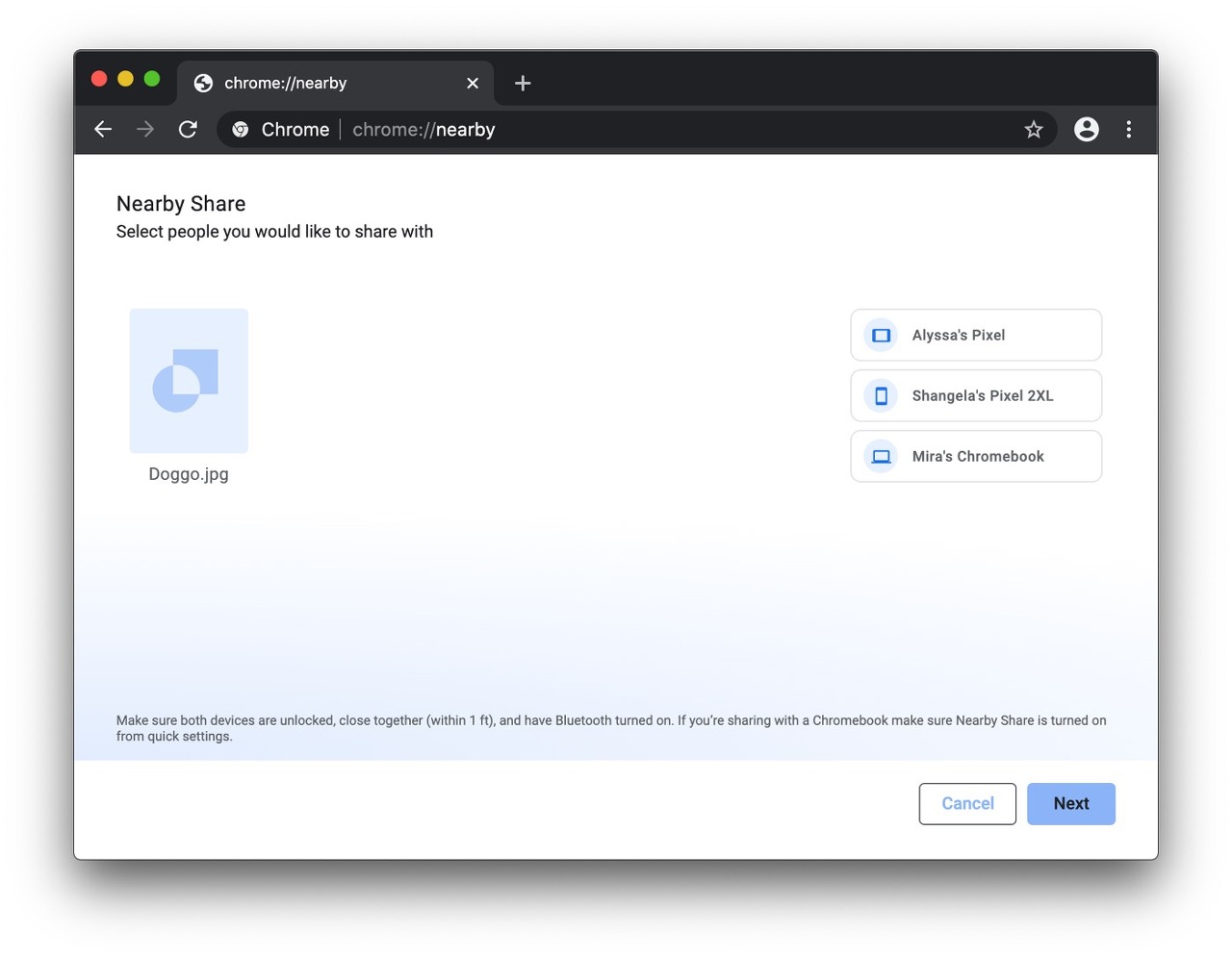 Windows와 마찬가지로 Mac에서도 웹 브라우저 「Chrome」 를 통해 이용하는 구조로 최신 Canary 버전과 Dev 버전 'chrome://flags' 에서 'Nearby Sharing' 을 활성화하고 브라우저를 다시 시작하고 'chrome:// nearby' 에 액세스하여 사용할 수 있습니다.