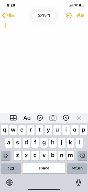 - 다시 실행 : 세 손가락으로 오른쪽으로 스 와이프