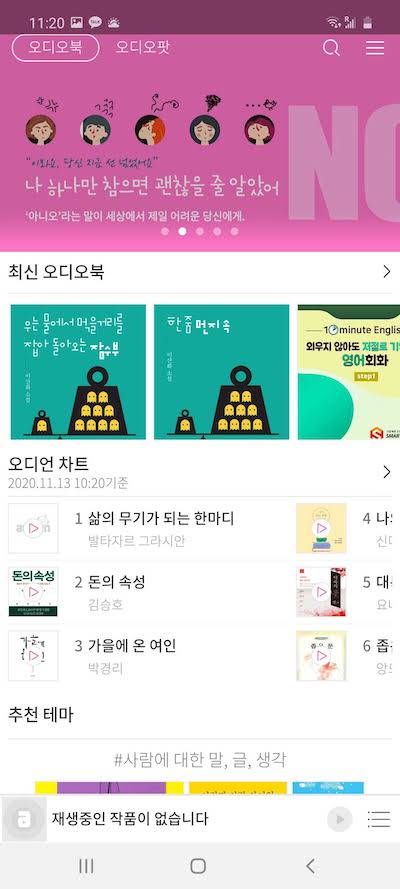 대부분의 어플이 너무 많은 책과 추전이 있는데 반해서 단순한 오디언의 인터페이스가 눈길을 끄는 것 같습니다. 나머지는 얼만큼 나에게 맞는 책을 추천해 주는지 문제겠지요?