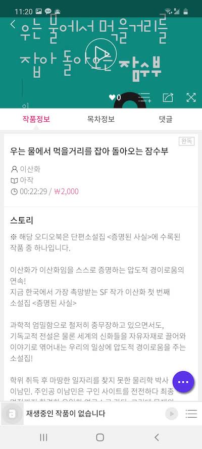 책을 일반적인 기계음이 아닌 성우의 더빙으로 실감나게 들을 수 있습니다. 결제전에도 마치 유튜브감각으로 미리 들어볼 수 있는 기능은 참 좋은 것 같습니다.