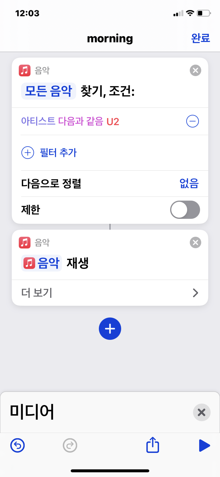 아이폰의 우영체계가 iOS14.3 로 업데이트가 되면서 단축어에서 음악이 재생되지 않는 문제가 생겼습니다. 이번시간에는 간단하게 음악을 재생시킬 수 있는 방법에 대해해 알아보도록 하겠습니다.